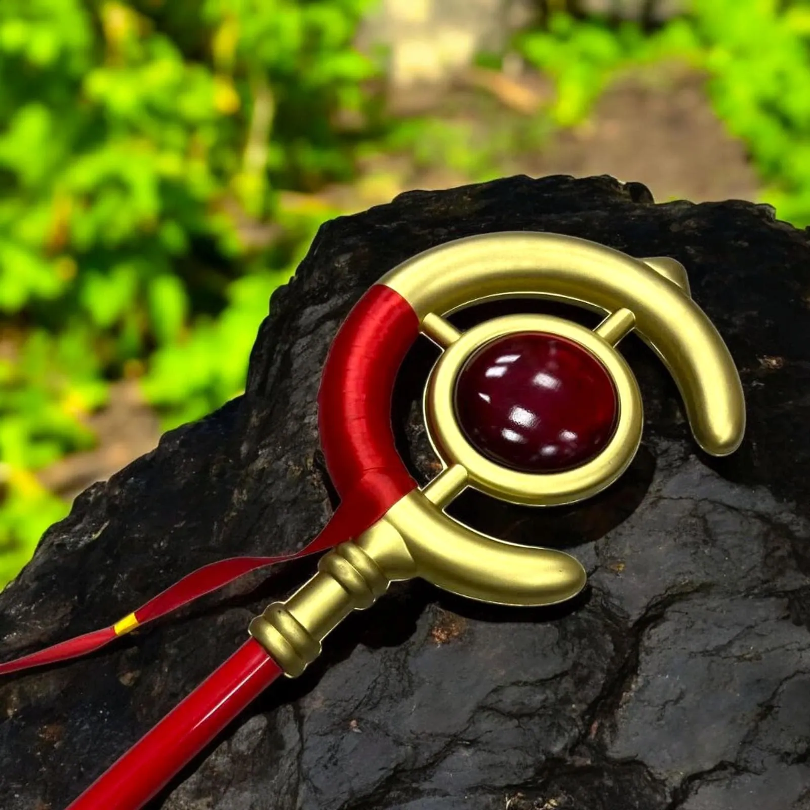 Multi-layer paint with a matte-to-satin gradient on the shaft and high-gloss accent on the crown — the same layering cosplay studios use for Daisho, WETA-grade props. The finish is resilient against minor handling marks; wipe with a soft microfiber to restore the sheen.